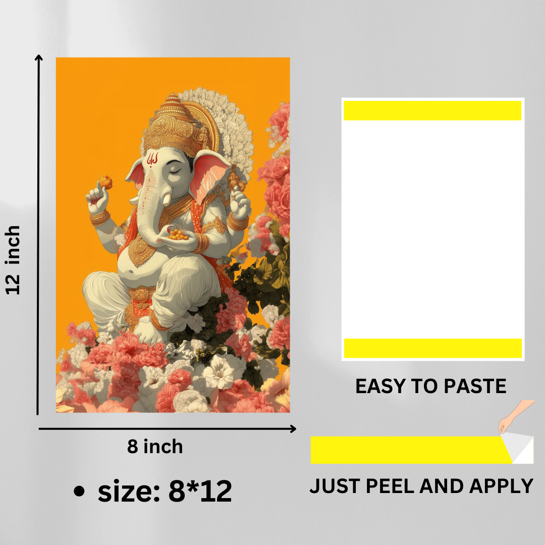 Lord Ganesha Spiritual Wall Poster | Self Adhesive Wall Sticker | 8×12 Inch HD Print | Peel & Stick